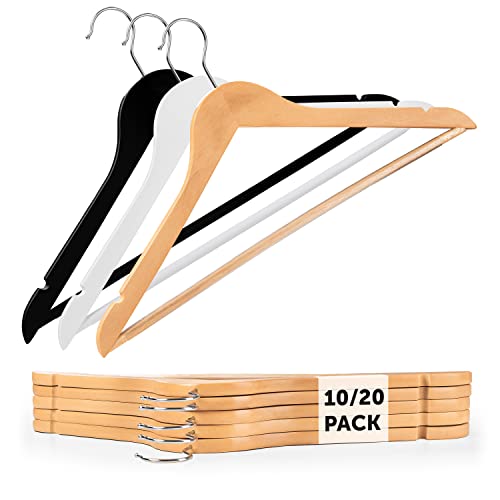 SereneLife Trähängare – platsbesparande slitstark smal klädhängare set med 360 graders vridbar metallkrok, kan hålla upp till 4,5 kg. för rockar, jackor, byxor och klänning (20 stycken)