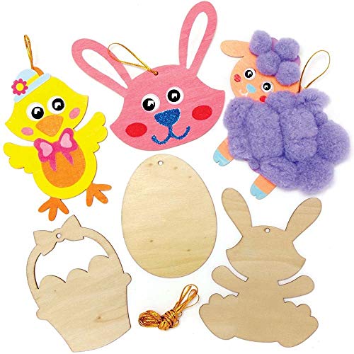 Baker Ross AX807 Påsk trädekorationer – förpackning med 12, trähantverk för barn att tillverka, måla, dekorera och visa upp