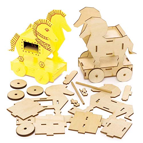 Baker Ross FE453 trojansk häst trähantverkskit – paket med 2, trähantverk för barn att dekorera och visa, pedagogiska aktiviteter för barn