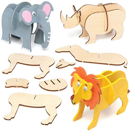 Baker Ross FE251 Djungel djur trä scenkit – 4-pack, byggsatser för trähantverk för barn konst och hantverksprojekt