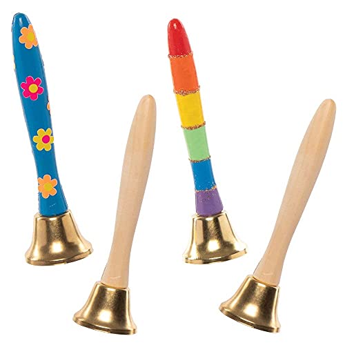Baker Ross FE597 Handklockor i trä hantverk – 4-pack, skapa dina egna musikinstrument, träleksaker för barn, måla dina egna trähantverk