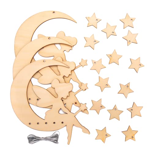 Baker Ross AT539 Mobil älva trä kit – paket med 3, trähantverk för barn att designa, måla, dekorera och sedan använda