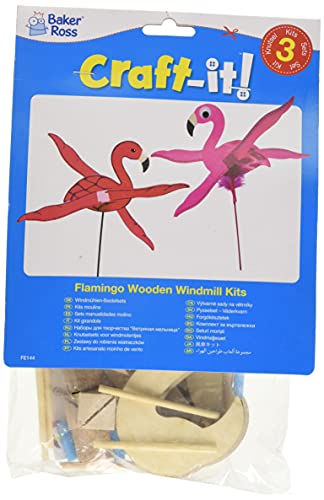 Baker Ross FE144 Flamingo trä väderkvarn kit – 3-pack, för barn konst och hantverksprojekt, trähantverk för barn att dekorera, anpassa och visa upp