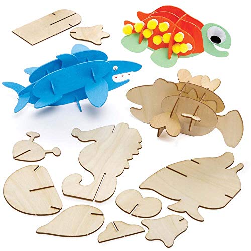 Baker Ross FE376 Sealife trähantverkskit – paket med 5, trähantverk för barn att dekorera och visa, barns pedagogiska aktiviteter