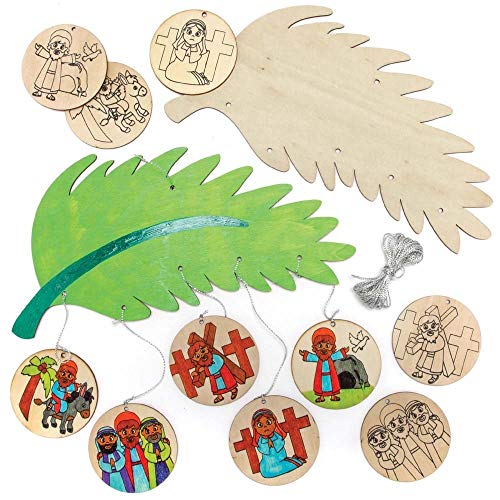 Baker Ross AX778 mobilkit för heliga veckan – paket med 2, trähantverk för barn att designa, måla, dekorera och sedan använda denna påsk