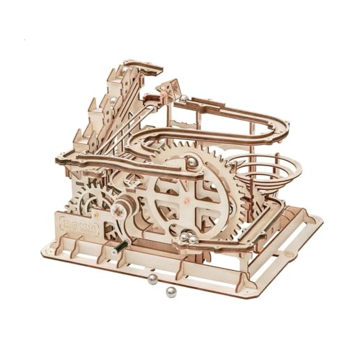 Robotime Marble Roller Coaster Clockwork Mechanical 3D-pussel spel trähantverk byggsats vuxen hantverk set pussel present (vattenhjulsunderlägg)