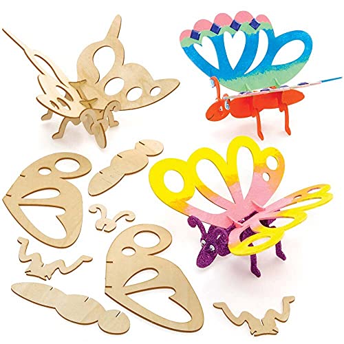 Baker Ross AX841 insekt trähantverk kit – paket med 5, trähantverk för barns konst och hantverksprojekt, bra för en konstfest