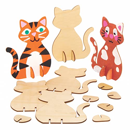 Baker Ross AT799 Stående katter i trä – 6-pack, trähantverk för barn att designa, måla, dekorera och sedan använda
