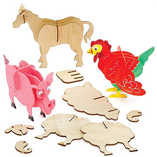 Baker Ross FE511 Gårdsdjur trähantverkskit – 5-pack, trähantverk för barn att dekorera och visa, barn pedagogisk aktivitet
