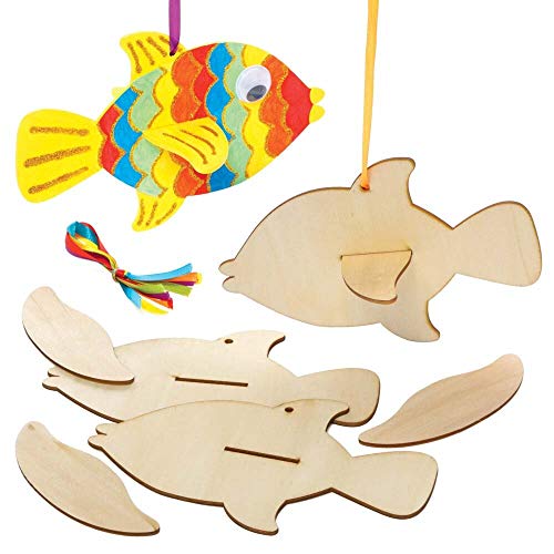 Baker Ross FE234 Fisk trädekorationer - paket med 6, trähantverk för barn att dekorera och visa, skapa din egen prydnad för barnkonst och hantverk