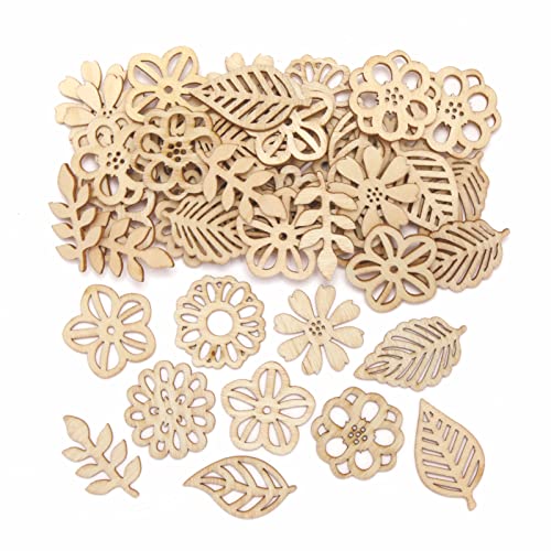 Baker Ross AX894 Träformer med blommor och blad – paket med 72, trähantverk för barn att designa, måla, dekorera och sedan använda för utsmyckningar eller korthantverk