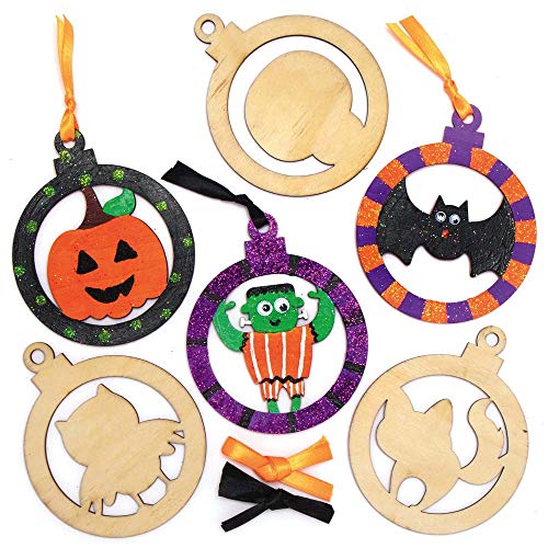 Baker Ross AX230 Halloween träjulgranskulor dekorationer - 10-pack, halloween-prydnader, trähantverk för barn, dekorera din egen