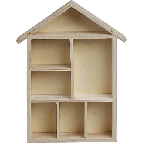 Creativ 575160 trähylla i husform med 7 små fack, beige