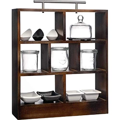APS 33210 mörkbrun trähylla för högte med 4 stora och 3 små fack, handtag av rostfritt stål, 34 x 10 x 38 cm