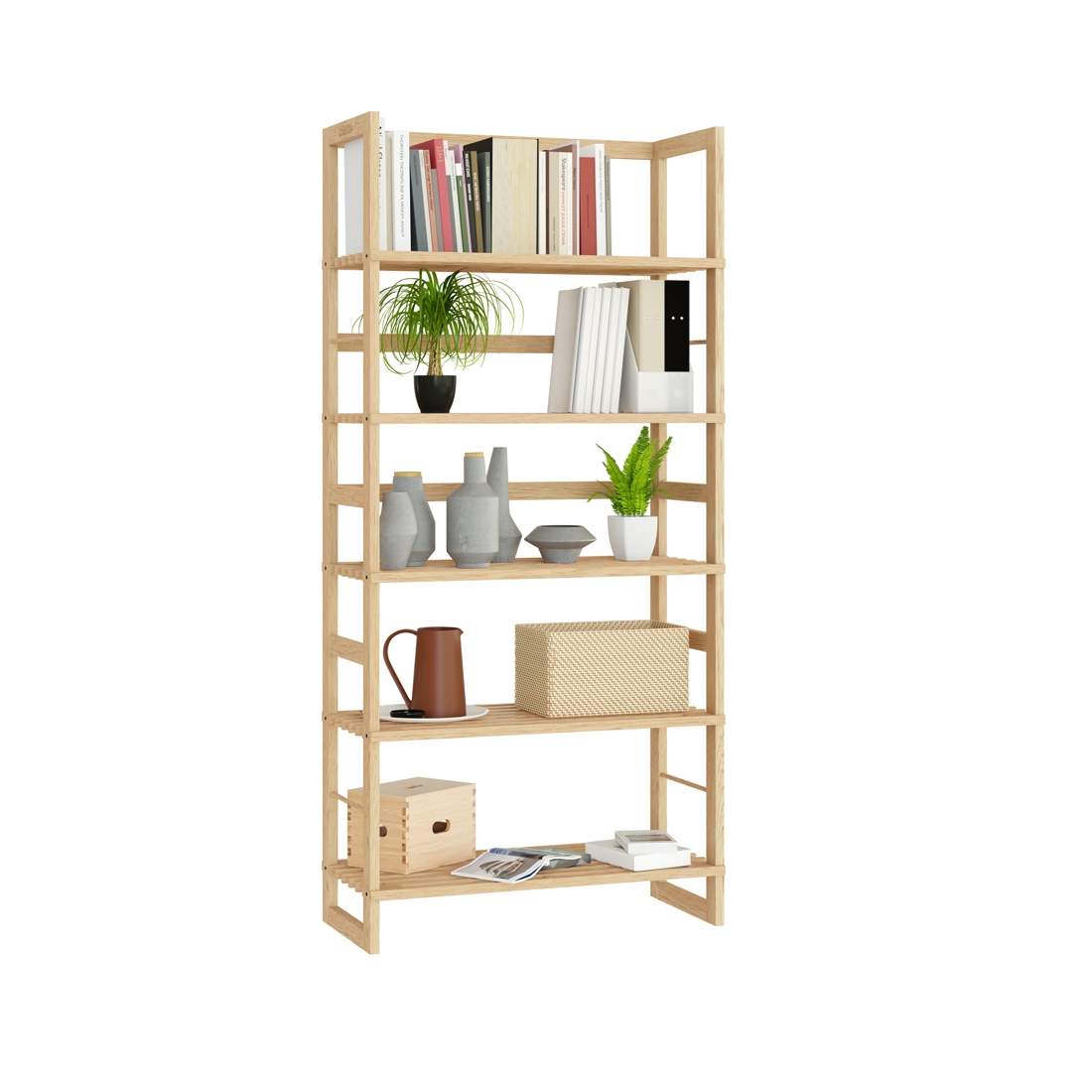 Stående trähylla – 5 nivåer, 136x58x27cm, äkta trä