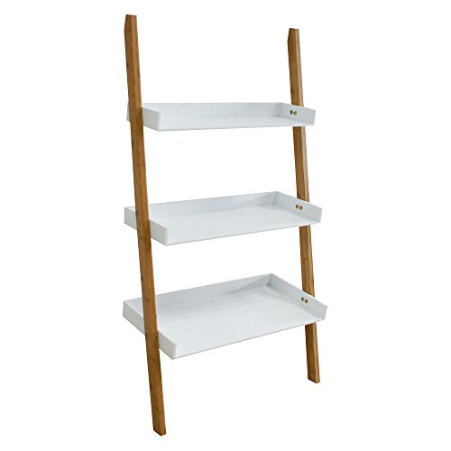 MSV ledarhylla bambu MDF HxBxT 105 x 55 x 25 cm stående hylla i 3 steg med skåp som dekorativ hylla för arbetsrum och vardagsrum som väggstödhylla och trähylla med 3 fack, natur/vit