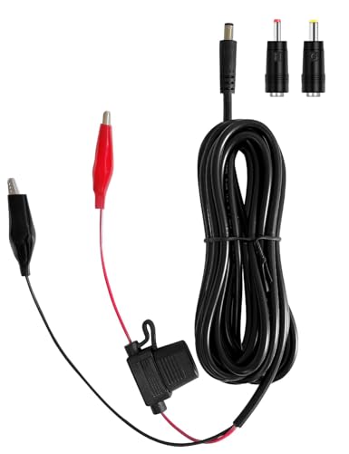 Lonnky Strömkabel 3 m för Viltkamera, DC 5.5 x 2.1 mm Adapter för HAZA, WOLFANG, GardePro, KJK, iZEEKER, Kompatibel med Batterier och Solpaneler, 5 A Säkring och 2 Adaptrar