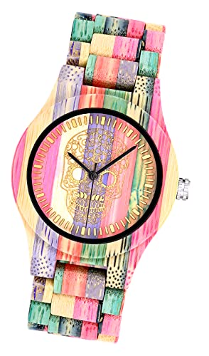 MicLee Herr dam enkel träklocka cool gulu-huvud färgglad naturträ urtavla trä analog kvartsrörelse armbandsur för kvinnor män gåvor, Dam