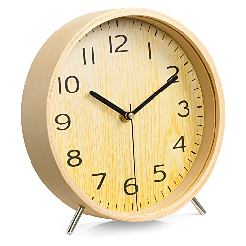 Navaris analog träklocka – tyst rörelse rund träklocka för skrivbord, bordsskiva, bänkskiva, hylla – mantelklocka – ljusbrunt trä