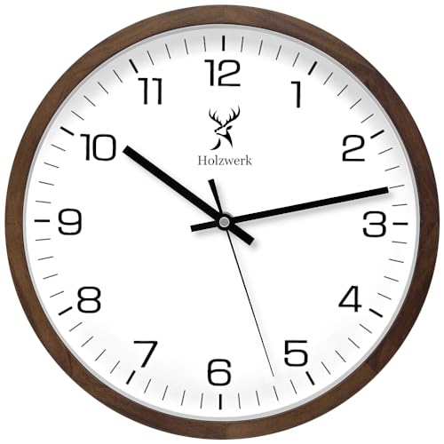 Holzwerk Germany naturligt trä väggklocka träklocka vintage tyst urverk utan tickande ljud brun vit ljudlös av handgjort massivt trä natur trä 30 cm