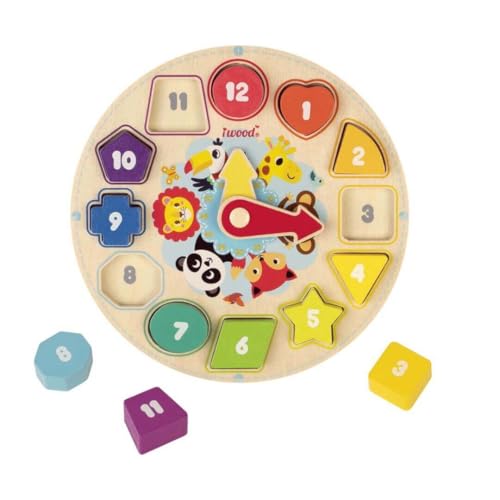 WOOMAX - Leksak träklocka, Zookabee, 22 cm diameter, Vilda djur, Pedagogiska klockor, Snäckbar, Djungeldesign, Pedagogiskt spel, leksaker för barn 3 år, pedagogiska klockor, FSC (47571)