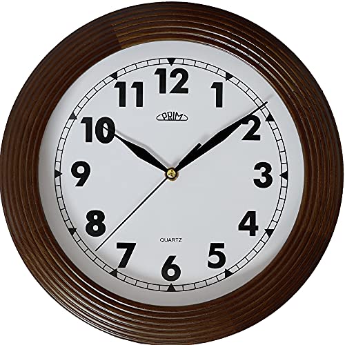 PRIM Dark Wood Wall Clock – väggklocka, 29 cm analog väggklocka tillverkad av trä, traditionell träklocka med arabiska siffror (mörkt trä)