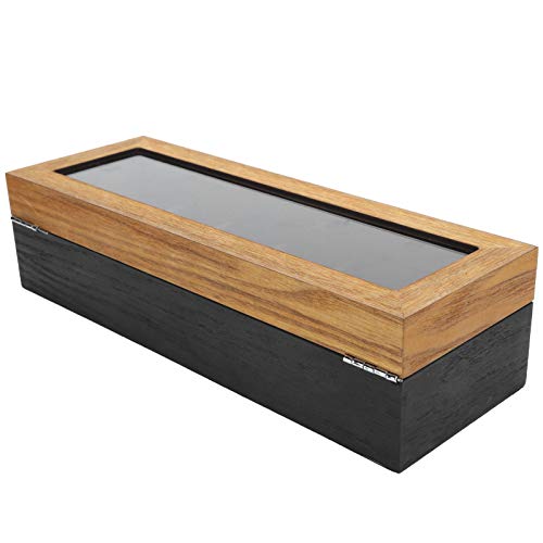 Saluaqui Premium Träklocka 6 Slot Displayarrangör med Glas Topp för Samlare och Titta på Entusiaster, Solid trä Lyxförvaring Fodral