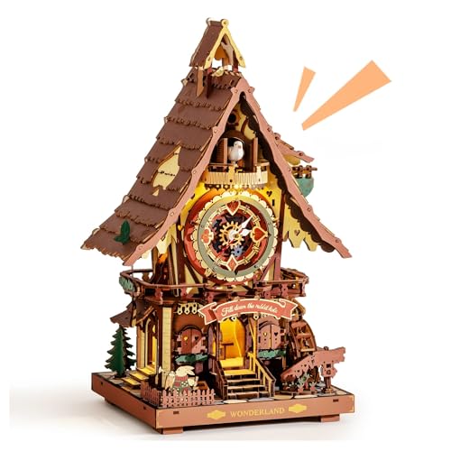 ROKR Gökklocka 3D träpussel vuxna träklocka modellbyggsatser present för män Vintage Färgad LC901C