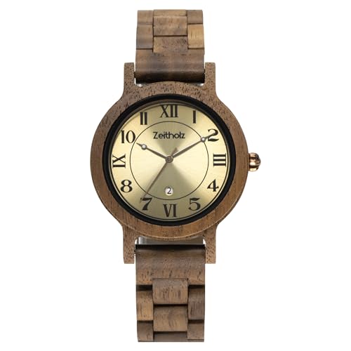 Zeitholz Unisex-träklocka analog med valnöts-armband – modell molnsten – med silverurtavla – allergivänliga – hållbara handgjorda klockor