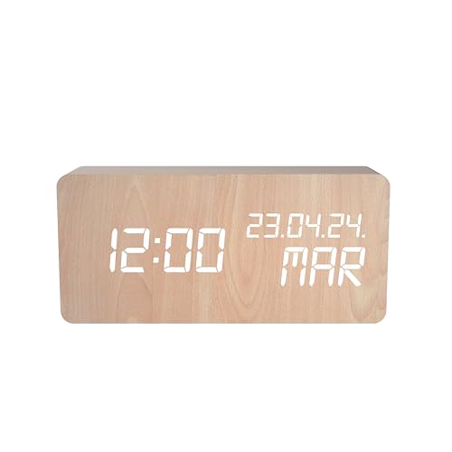 Lancoon Digital träklocka - multifunktionell LED-väckarklocka med tid/datum/temperaturvisning och röststyrning för hemresor - AC11Black_White