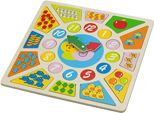 New Classic Toys 8250 träklocka pussel, lär dig räkna, pedagogisk uppfattning leksak för förskoleåldern småbarn pojkar flickor, flera färger