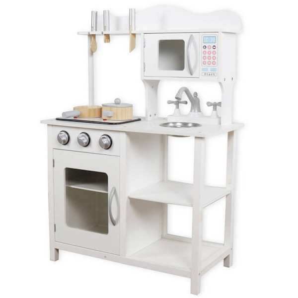 Leomark vitt trä barnkök 65x30x94cm (H), lekkök av trä, kökslekset för barnens för hem barnkök med tillbehör, träkök för flickor och pojkar, Vit modern