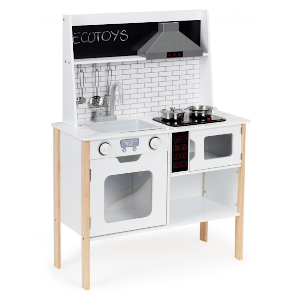 Träkök för barn retro ugnsbrännare diskbänk kökstillbehör ECOTOYS