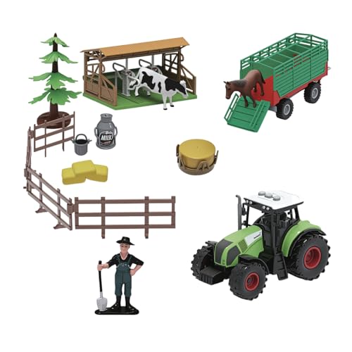 TACHAN - Stort bondgårdsset med centralbyggnad och traktor – 12 delar – bonde och djur (CPA Toy Group 702T01049)