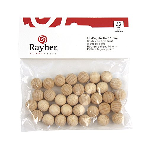 Rayher 6250300 träkulor, borrade, 10 mm ø, 2,8 mm hål, SB-Btl 35 stycken