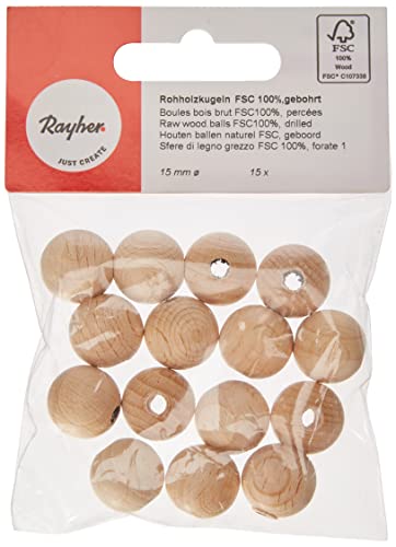 Rayher 6248700 träkulor FSC 100%, borrning, 15 mm ø, 4 mm – DL, SB-Btl 15 stycken