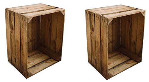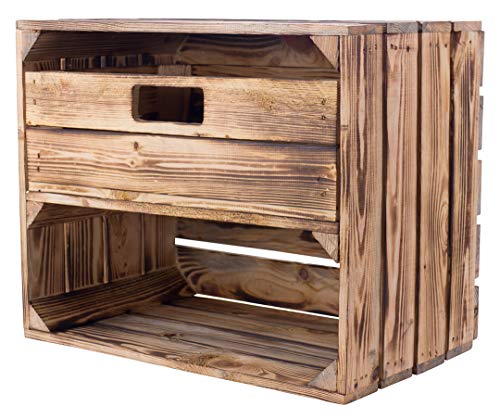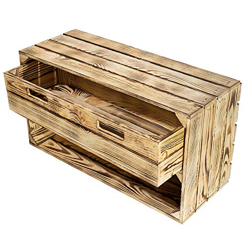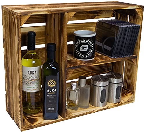 Kistenkolli Altes Land Kryddhylla av trä flammad platta fruktlådor Wilma med två nivåer ca 50 cm x 40 cm x 16 cm/hylllåda, trälåda/vinlådor, väggdekoration vintage (set med 1 bröllop)