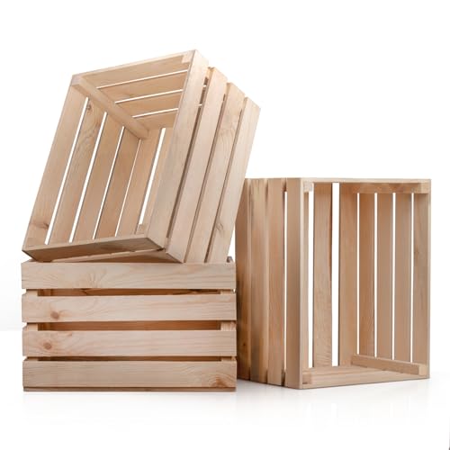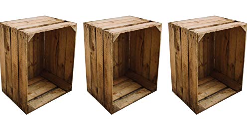 Trälåda äppellåda, fruktlåda, vinlåda, vintage trälåda, renborstad, stabil 50 x 40 x 30 cm (set om 3)