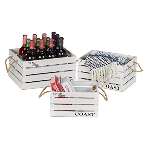 Relaxdays trälåda vintage set om 3, maritimt utseende, bokstäver, fruktlådor i 3 storlekar, förvaring och dekoration, vit