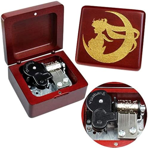 Sinzyo Sailor Moon Speldosa Vintage Trä Jul Alla hjärtans dag Födelsedagspresent (Röd trälåda)