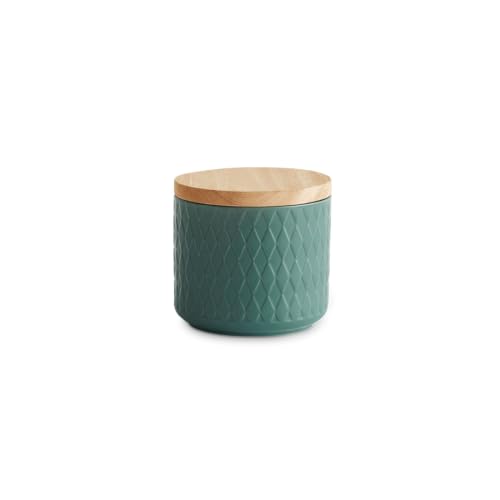 Keramik förvaringsboxar med trälock i mitten, lufttät gummitäcke, förvaringsbehållare, förvaring av färskhållarburkar – 1x Dunkelgrün: 10x9cm