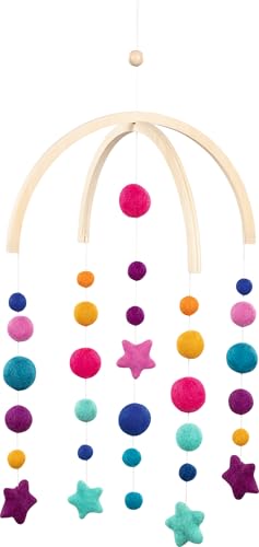 goki 52868 – Mobil stjärndans av trä och ullfilt, lugnande trämobil, tema måne och stjärnor i babyrummet, främjar fantasi och visuell utveckling, 43 cm x 42 cm, från födseln