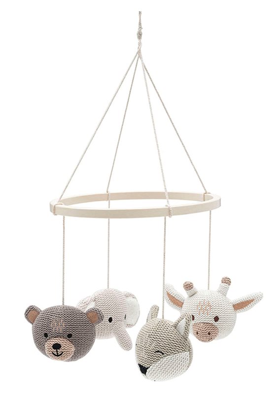 Fehn trämobil sengångare – trämobil med söta tygrefigurer – sömnhjälpmedel för lugn och sysselsättning – för spädbarn från 0-5 månader