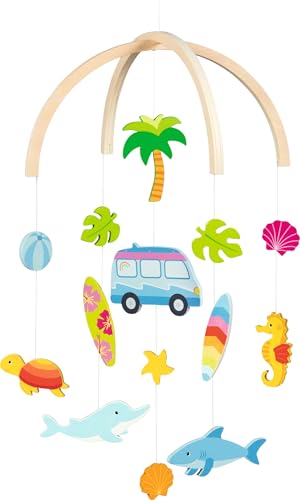 goki 52865 – Mobil surfare van av trä, lugnande trämobil med söta figurer, tema hav och strand i babyrummet, främjar fantasi och visuell utveckling, 25 cm x 30 cm, från födseln
