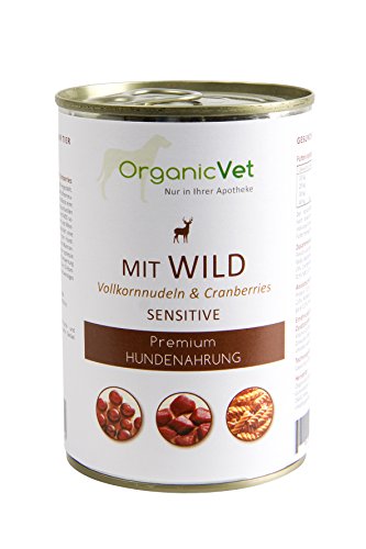 OrganicVet hund våtfoder Sensitive Wild med helkornudlar och tranbär, 6-pack (6 x 400 g)