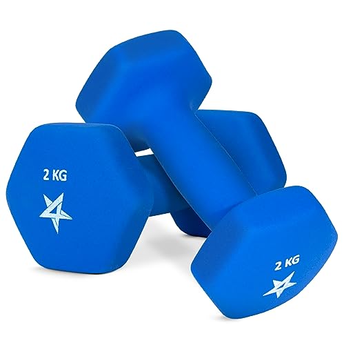 Yes4All RZYR Hex neopren vikter hantlar set par (1 kg till 7 kg) - Hantelset, handvikter set för kvinnor män, hemmagym, träning, 2 kg x 2, blå