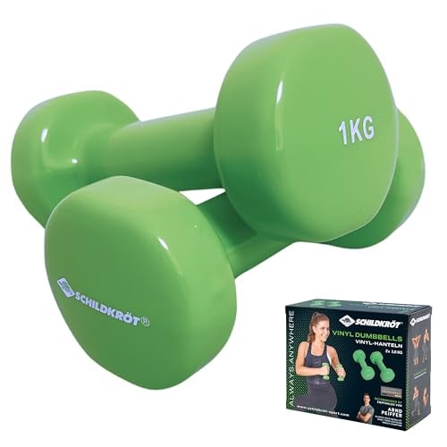 Schildkröt vinylhantlar I perfekt för gymnastik, aerobics- och fitness-träning I två gummerade hantlar I 1,0 kg i grönt