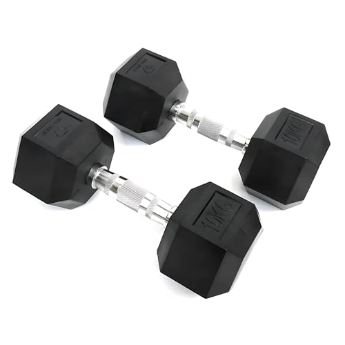 Suprfit Hexagonhantlar – hantelset, vikter med gummibeläggning i par, sexkantiga hantlar, set för crosstraining och funktionell träning, vikter, hantelset, dumbbells-set, 2 x 10 kg