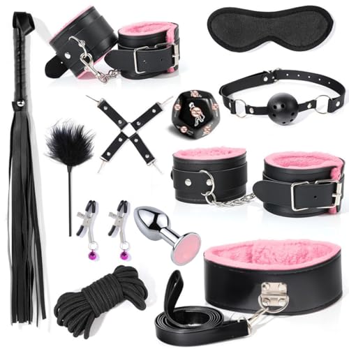 Tolv Stycken Set Glant LäDer Stabil Plush Manchet SäNg, Justerbar TräNing Cross Set, Par GåVor-H1 (rosa)