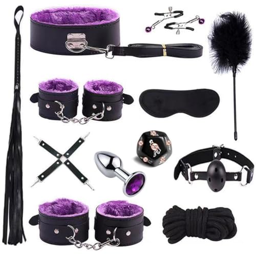 Tolv Stycken Set Glant LäDer Stabil Plush Manchet SäNg, Justerbar TräNing Cross Set, Par GåVor-H1 (Lilla)